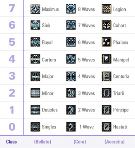 | 2 | Minor / Captain | 3 Waves / Feawen | Triarii |