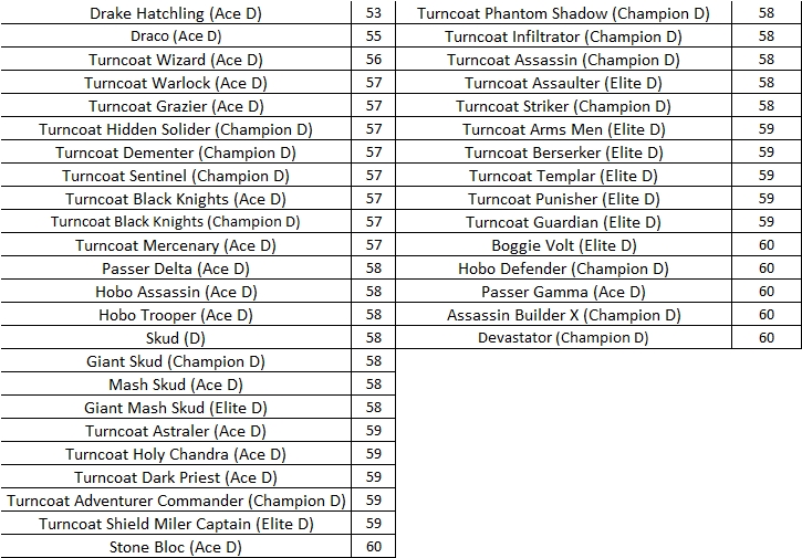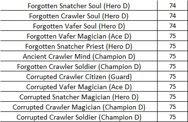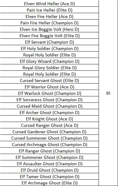 Elven Ruins Monster Information