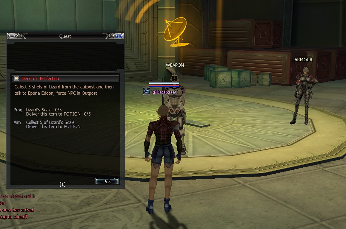Left click Weapon NPC, click the QUEST and pick the quest “Decem’s Perfection”.